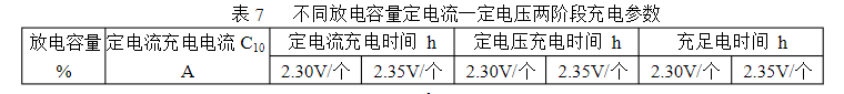 表7不同放電容量定電流一定電壓兩階段充電參數