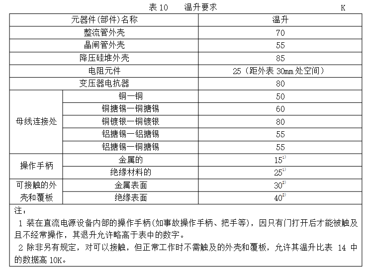 當環境溫度為15℃~35℃,產品輸出額外電壓和額外電流,并輸入電壓為額外電壓的110%時,其各元器件的溫升不得超過表10的規則。并且發熱元件的溫度不該影響周圍元器件的正常工作和損壞。