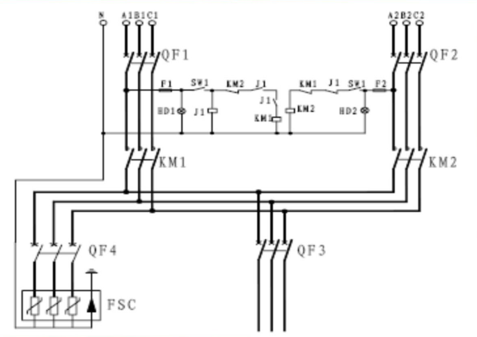 2、交流接觸器通過機械聯鎖和電氣互鎖兩種方式來防止兩路交流電源同時接入,以保證交流供電可靠運行。