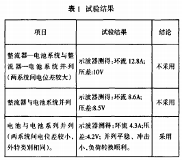 依據上述試驗成功的并列計劃,擬定了直流屏替換的“舊直流屏一暫時直流電源系統→新直流屏”供電轉化施工過程:①用電池組和暫時充電機樹立一個暫時系統并將直流饋供支路轉至暫時直流系統空氣開關下方;②將原直流系統的允電機停用,從暫時直流系統引出一組直流電源接到空氣開關上方(注意極性);③合上空氣開關(此時暫時充電機不工.作).將負載轉至暫時直流電源供電;④斷開舊直流屏的饋供支路,合上暫時充電機的流輸入電源,使暫時直流系統正常作業;⑤斷開舊直流屏交流輸入電源,撤除舊直流屏;◎新直流屏就位,設備電池,連線,接交流,調試正常;⑦重復上述過程.即可將負載接入新的直流屏;出檢食核對各饋供支路極性正確,新屏工作正常。