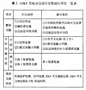 如表2所示為110kV變電站真流l川替換前后比照一覽表。替換后的直流系統滿足變電站設備對直流系統的要求。